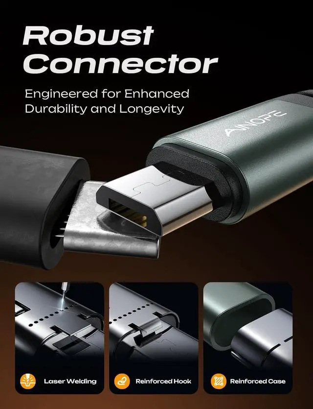 UPGRADED CONNECTOR: The plug was reinforced from three aspects: metal welding technology double glue reinforcement and use more pure purity High aluminum alloy material. After this series of upgrades our connector pass 5KG test which extends our micro usb cable 10X service life.