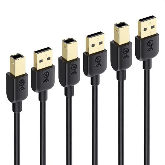 USB A to USB B cable connects a Mac or PC computer with USB 2.0 / 3.0 to a printer printer switch hub printer server MIDI controller MIDI keyboard audio interface and other legacy peripheral devices with a square USB B port; Flexible and durable USB A cable is lightweight without sacrificing any performanceWireless alternative to connect printers or s directly for a secure connection or when a printer LAN card fails; The printer cable transfers data faster than a Wi-Fi connection at up to USB 2.0 cable rate of 480 Mbps; Backwards compatible with USB 1.0 1.1; Hot-pluggable operation supports up to 127 daisy-chained devicesCost-effective 3 pack USB B to USB A cable provides spare cables or a superior replacement for fixing troublesome connection problems; USB MIDI cable is designed for printing scanning file transfers and device data syncingPremium construction includes gold-plated connectors with bare copper conductors and foil & braid shielding to provide superior cable performance and protect against EMI/RFI noise; Engineered to deliver the clearest possible signal for a reliable performance; 10 and 15 foot versions have 24 AWG conductors to provide trouble-free transmission at longer lengthsMac & PC compatible with devices such as a multifunction laser or thermal printer desktop document midi controller midi keyboard DAC snowball Mic development board UPS and other legacy devices with a USB-B port; Excellent replacement cable for products with USB Type B from Arduino Blue Brother Canon Epson Fujitsu HP IOGEAR Lexmark M-Audio and Panasonic
