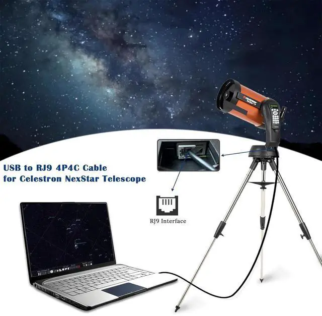 [USB to RJ9 Cable for Celestron NexStar]Use this USB to RJ9 cable to establish a connection between your computer and hand controller. It provides visual assistance through planetarium software on your computer enabling real-time identification of unknown celestial objects while overcoming single-exposure limitations to achieve long-exposure imaging. [Scope of Application]Suitable for