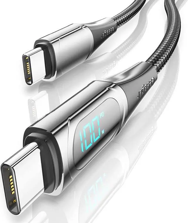 100W SUPER FAST CHARGING: Essager 5A/20V PD 100W fast charging cable takes the charging speed to the next level. The fast charge can charge a Samsung S20 from 0 to 80% in 30 minutes. It can also charge a MacBook Pro 16" from 0 to 40% in 30minutes. Please use a wall charger that supports fast charging. LED REAL-TIME POWER DISPLAY: Essager Type-C to Type-C cable can display the charging power in real time, allowing you to monitor your device in real time, bid farewell to the anxiety of unknown charging rate, and give your mobile phone/computer/tablet the safest protection. You have the highest technological experience. SMART E-MARKER: Essager USB-C to USB-C fast charging cable has a built-in E-Marker chip, which can intelligently identify the charging protocol of mobile phones/computers/tablets/gamepads, and provide 18W/30W/45W/60W/65W/96W/100W power according to the highest charging protocol supported by the device. The E-Marker chip ensures the fastest and most suitable performance for the device and guarantees the safety of the device. SUPER DURABLE: Premium nylon braided USB C to C cable with zinc alloy material reinforced connector provides long life and tangled-free performance. The strain relief design and sturdy aluminum shield make the cable durable and reliable. UNIVERSAL COMPATIBILITY: Essager USB C to USB C fast charging cable compatible with all C-C devices: phones, tablets, and laptops. Such as Samsung S22/S21+/S21/S20/Note 20 Ultra/Note10; MacBook Air/Pro 13''; iPad Pro 2021/2020/2019/2018; iPad air 2020; Dell XPS 15/13, Google Pixel 6/4/4 XL/3XL/3a/3a2/2XL; Nintendo Switch; Kindle and more (see description).
