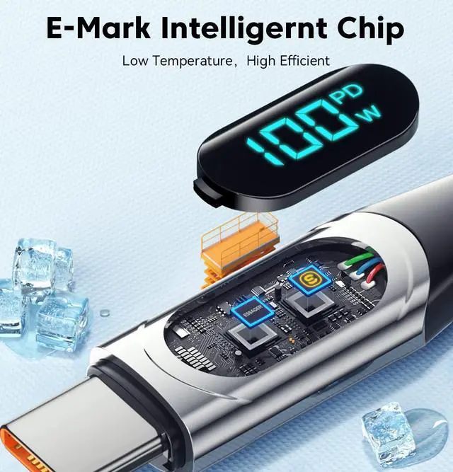 LED REAL-TIME POWER DISPLAY: Type-C cable can display the charging power in real time, allowing you to monitor your device in real time, bid farewell to the anxiety of unknown charging rate, and give your mobile phone/computer/tablet the safest protection. You have the highest technological experience.