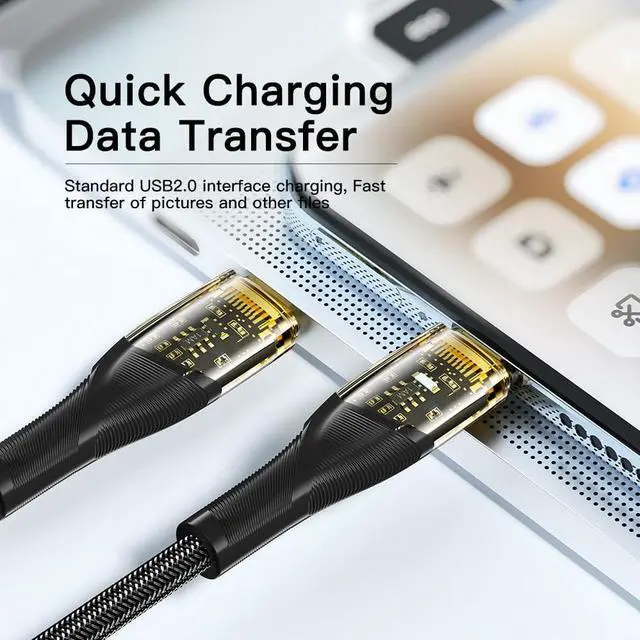 Mechanical Transparent Head: The fast charging cable connector is designed with a fully transparent shell, which is fresh and chic, and you can see the internal chip to show your personality.