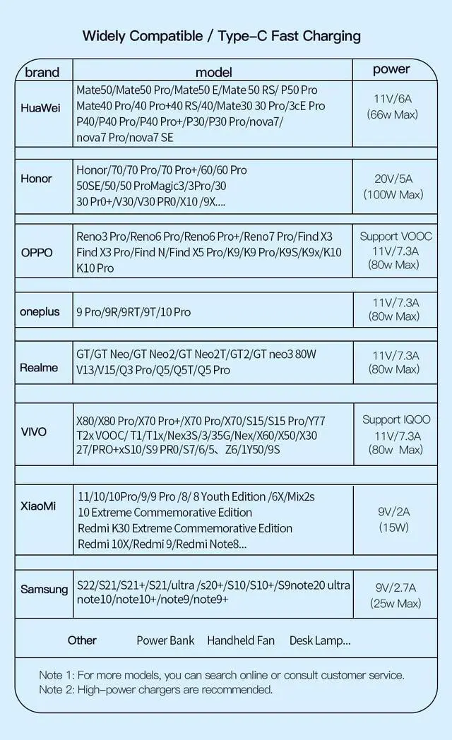 Model:7A 80W USB A To Type C Charging Cable Color:Blue Length:1m/2m Max Current: 7A Voltage: 80W Chip: Built In Emarker 80W Super Flash Charge. 480Mbps Date Transfer. Aluminum Alloy Shell Interface.