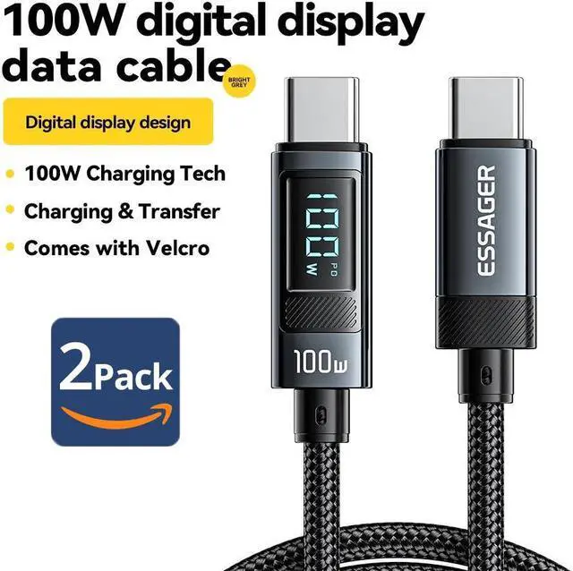 [Precise LED Display] usb c cable with display feature built-in E-mark chip to support high power and current(20 voltage/5 amp). This USB C charger cable can show charging status,you are fully informed of the charging speed and clearly get to know that if your phone is fast charging or not.