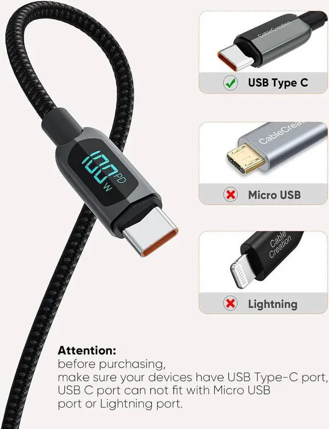Reminder: This USB C to C fast charging cable is perfect for laptops, like MacBook Pro, we recommend you to use PD charger to get better charging experience.