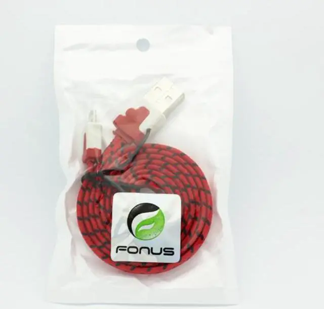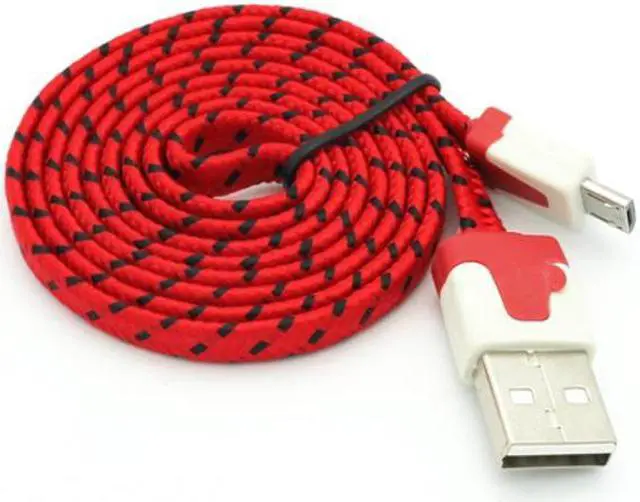Red Braided USB Cable Rapid Charger Sync Power Wire Tangle Free Flat Cord A65E2G-NE