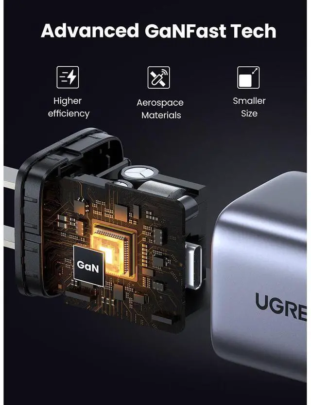 Engineered for efficiency, the Nexode charger supports both Power Delivery (PD) and Programmable Power Supply (PPS) standards, ensuring rapid charging for everything from high-performance smartphones to compact laptops. Each USB-C port is capable of delivering up to 45W individually, making it ideal for single-device charging. When powering two devices simultaneously, the charger intelligently distributes power, providing 25W and 20W to each port, respectively. Designed with portability in mind, the Nexode charger features a foldable 2-prong plug, making it an excellent travel companion. Safety is paramount, and UGREEN's Thermal Guard technology offers comprehensive protection against overheating, overcharging, and over-voltage, ensuring a safe and reliable charging experience every time.