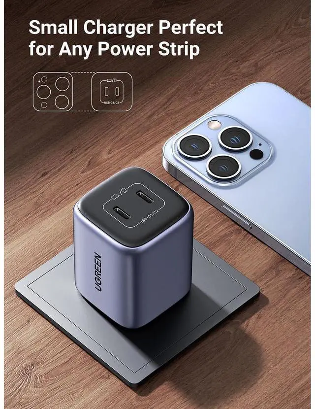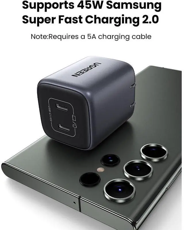 From the bustling world of high-demand electronics, the Nexode 45W 2-Port USB-C GaN Wall Charger by UGREEN emerges as a compact powerhouse for your fast-charging needs. This innovative charger leverages advanced GaN (Gallium Nitride) technology, allowing it to maintain a sleek, palm-sized design without compromising on performance. Delivering up to 45W of power, it features dual USB-C ports that cater to a wide range of devices, including the iPhone 13, iPhone 14, MacBook Air, Galaxy S22 Ultra, S22+, Steam Deck, iPad Pro, and Google Pixel.