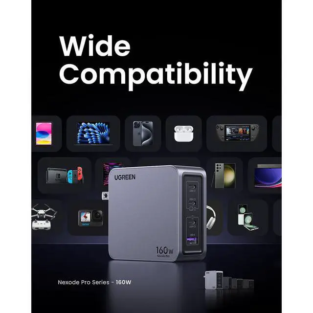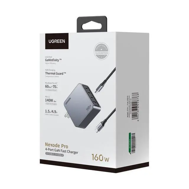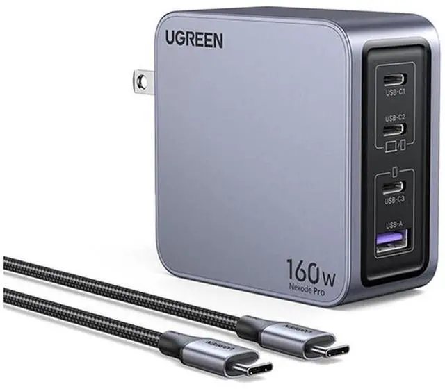 Let the Nexode Pro 160W 4-Port USB GaN Wall Charger from UGREEN revolutionize your charging experience with its powerful and versatile capabilities. Designed to cater to the needs of families and travelers with multiple devices, this charger is equipped with cutting-edge GaN technology, ensuring efficient and rapid charging for a wide range of electronics. The Nexode Pro features four distinct charging ports, making it an essential accessory for those with multiple laptops and gadgets. The USB-C1 port delivers an impressive output of up to 140W, perfect for powering high-end notebooks and ensuring they stay charged even during intensive use.
