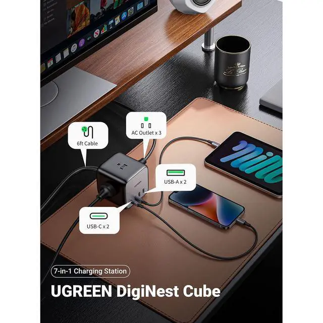 This 7-in-1 device is engineered to tidy up your space, providing your gadgets with the charging gusto they deserve. Ideal for maintaining a clean and clutter-free desktop, especially when working from home, this charging station supports high-speed charging with its two USB-A and two Type-C ports, allowing you to charge multiple devices simultaneously. Powered by advanced GaN III technology, the DigiNest Cube is smaller, lighter, and boasts higher energy efficiency with superior heat dissipation. Safety is paramount, featuring enhanced protection mechanisms such as over-temperature, over-voltage, overload, short-circuit, over-current, and grounded protection.