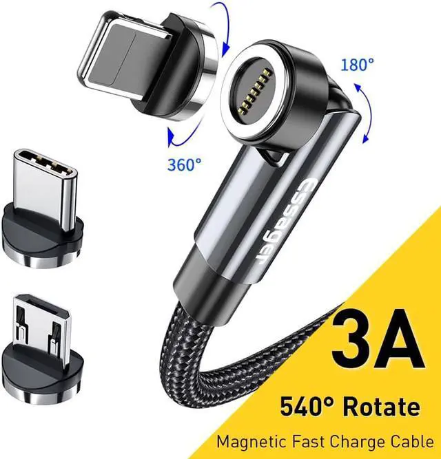 Universal USB Charging Cable: 360 magnetic charging cable has 3 magnetic tips, including Type-C and Micro USB iProduct to charge any device. The magnetic USB cable can meet the changing needs for your multiple devices, one magnetic charger cable charging for all smartphones.