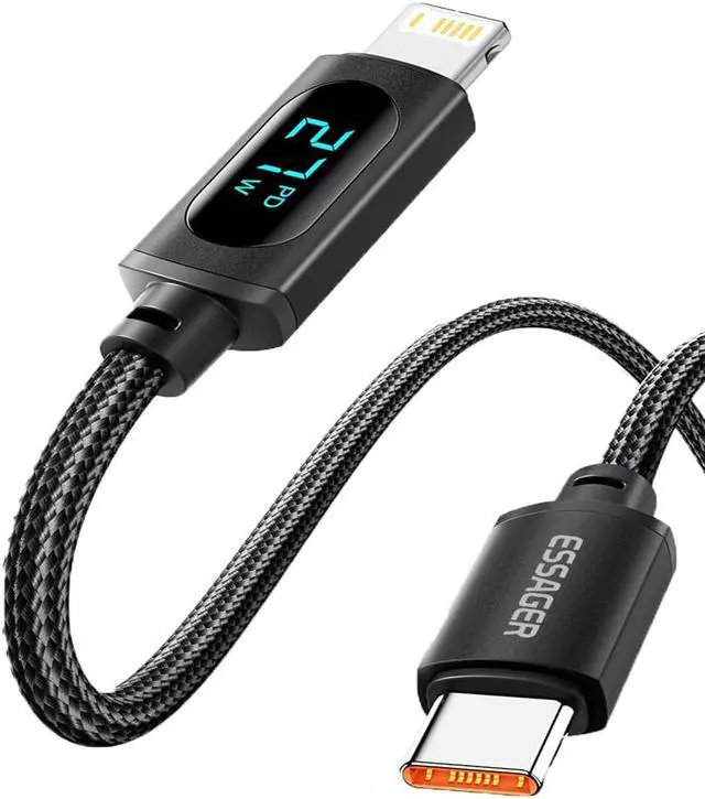 • LED Digital Power Display - This USB-C to Lightning Cable with cool led digital power display, this fast charging cord can show charging power and charging monitoring, technology has changed our lives and brought a different experience to our lives.