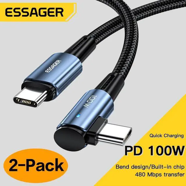 [6.6ft, 2-pack] 5A PD 100W USB C to USB C Cable Type C Fast Charging C to C Super Fast Charging Right Angle 90 Degree, USB C Charging Cable 480Mbps Data Nylon Braided for Samsung Galaxy iPad MacBook