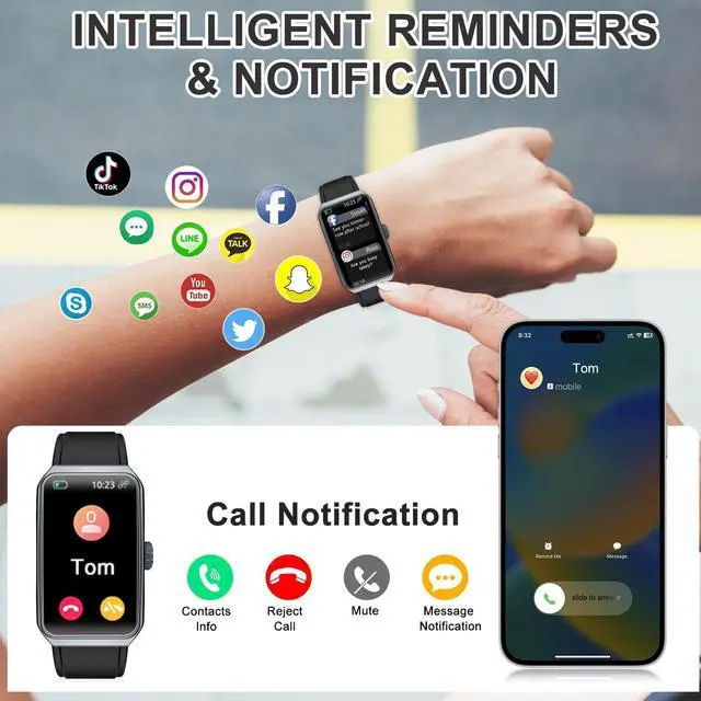 Smart Watch Health Fitness Tracker with a curved 1.47" HD color display and full touch screen functionality, the watch is as intuitive to use as it is beautiful to look at by providing you with a better visual and operating experience.
