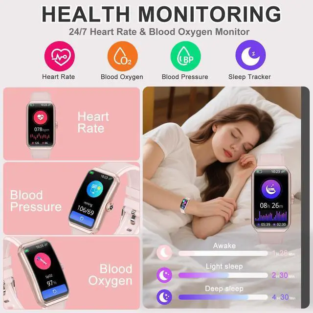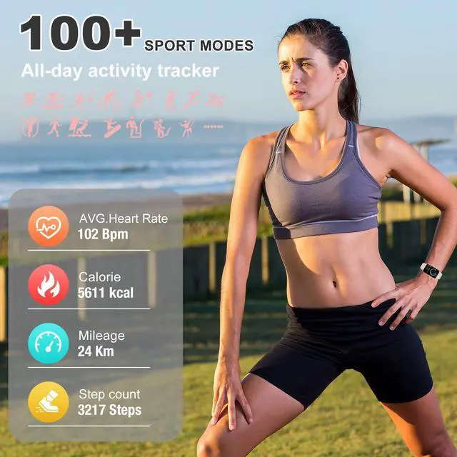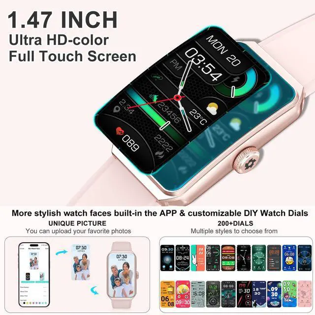 Smart Watch Health Fitness Tracker with a curved 1.47" HD color display and full touch screen functionality, the watch is as intuitive to use as it is beautiful to look at by providing you with a better visual and operating experience.