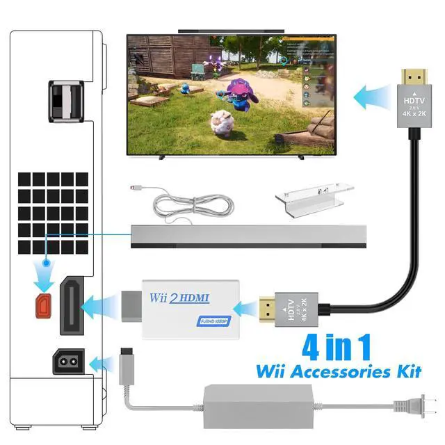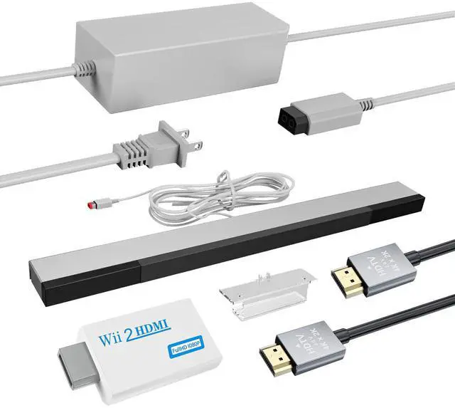 4 in 1 Wii Sensor Bar - Wii HDMI Adapter, HDMI Converter, Wii Power Cord AC Adapter, 4.92FT High Speed HDMI Cable Compatible with Nintendo Wii Accessories
