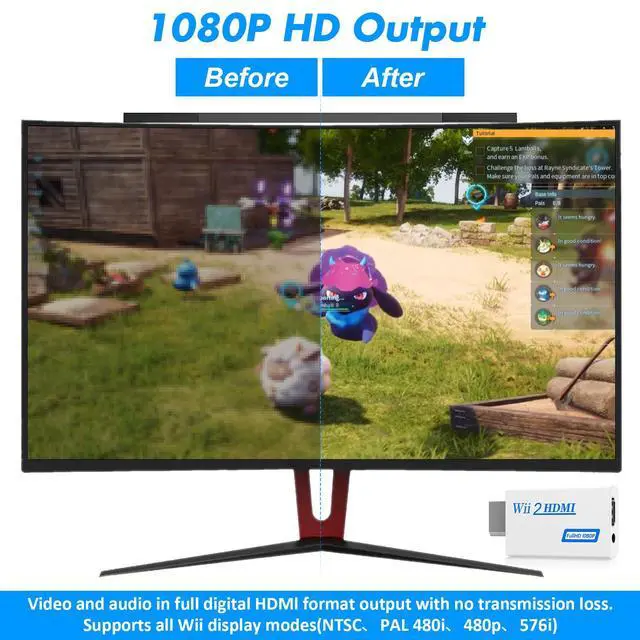 Plug and Play Wii HDMI AdapterNo complicated settings or driver installations needed, just connect the adapter for Wii to smart TV and enjoy seamless gameplay in stunning clarity. It provides stable signal transmission and supports both 720p and 1080p resolutions.