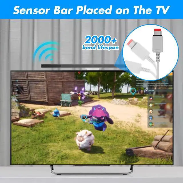 Upgraded Sensor Bar for WiiCompatible with all Wii controllers, motion plus controllers and other Wii controller addons. The bar ensures accurate and precise motion control, allowing you to fully enjoy all the interactive features of your Wii console. Comes with a clear stand, it with adhesive for easy attachment to tv, monitor or any smooth surface. 8.2ft cable ensures convenient placement of sensor bar.