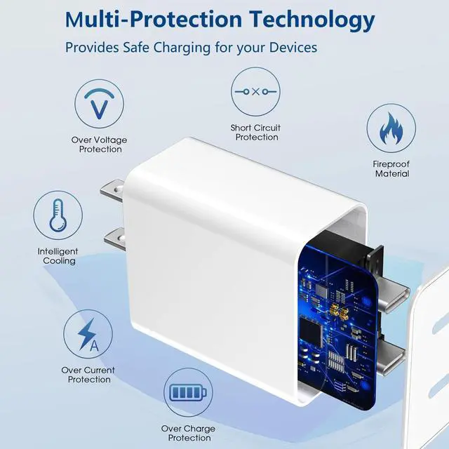 Safe and ReliableThe USB C charging plug is equipped with sturdy and fireproof PC shell, plus intelligent chip to protect against short circuit, over voltage, overheating and over current.The apple chargers for iPad aowns bulit-in multi-protection system,The smart chip including in the cable matches the current required by the Apple device automatically, charges your iPad device fast, safely and steadily.Protect your device from voltage fluctuation, over current, overheating and short circuit.