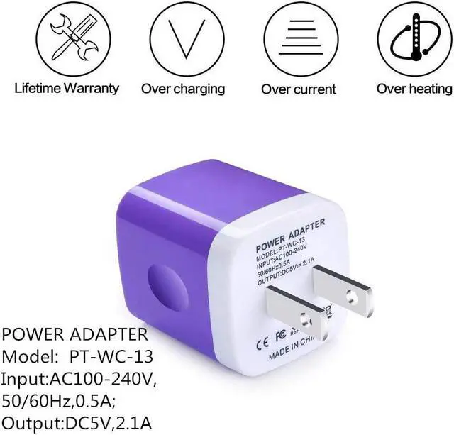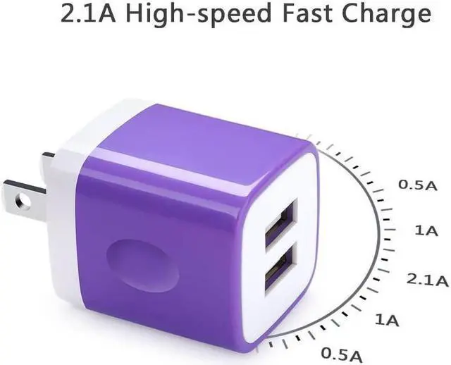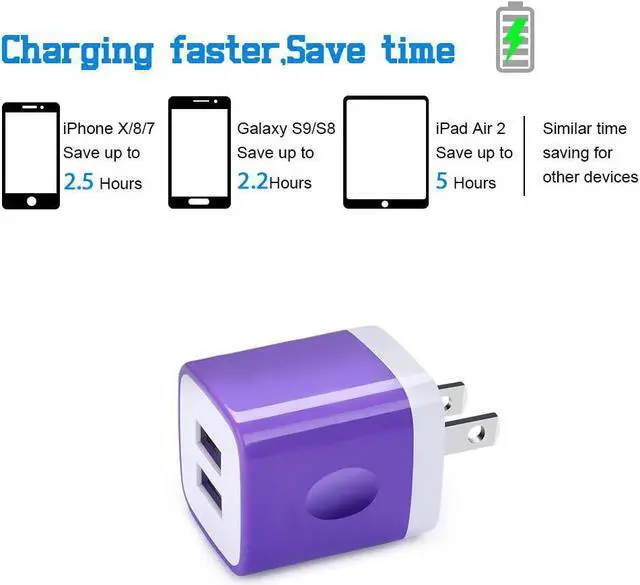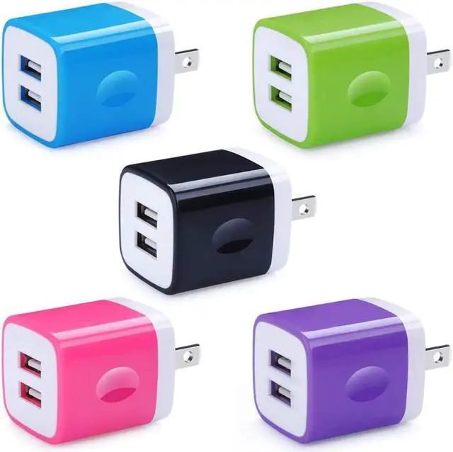 What you get: you can get 5-Pack different colors dual-port wall charger, and these fit for your home, office, and also you can share them with your friends and family as a gift.