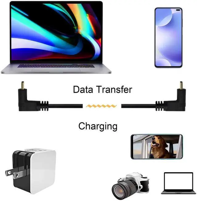 Double USB-C cable with 90-degree upper and lower L-shaped design,the right-angle plug can better fit your mobile phone or charger and other devices, allowing you to charge, play games, watch videos, read e-books, and transfer data more conveniently and comfortably.