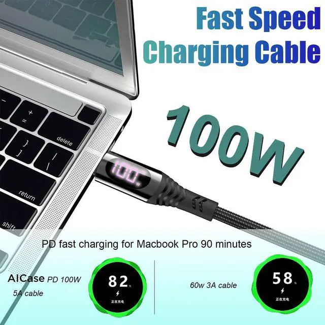 Digital Power Display]: This USB C to USB C cable features a cool led digital power display, which can directly monitor the speed of fast charging when charging your phone, tablet or laptop, charging status at easy glance.
