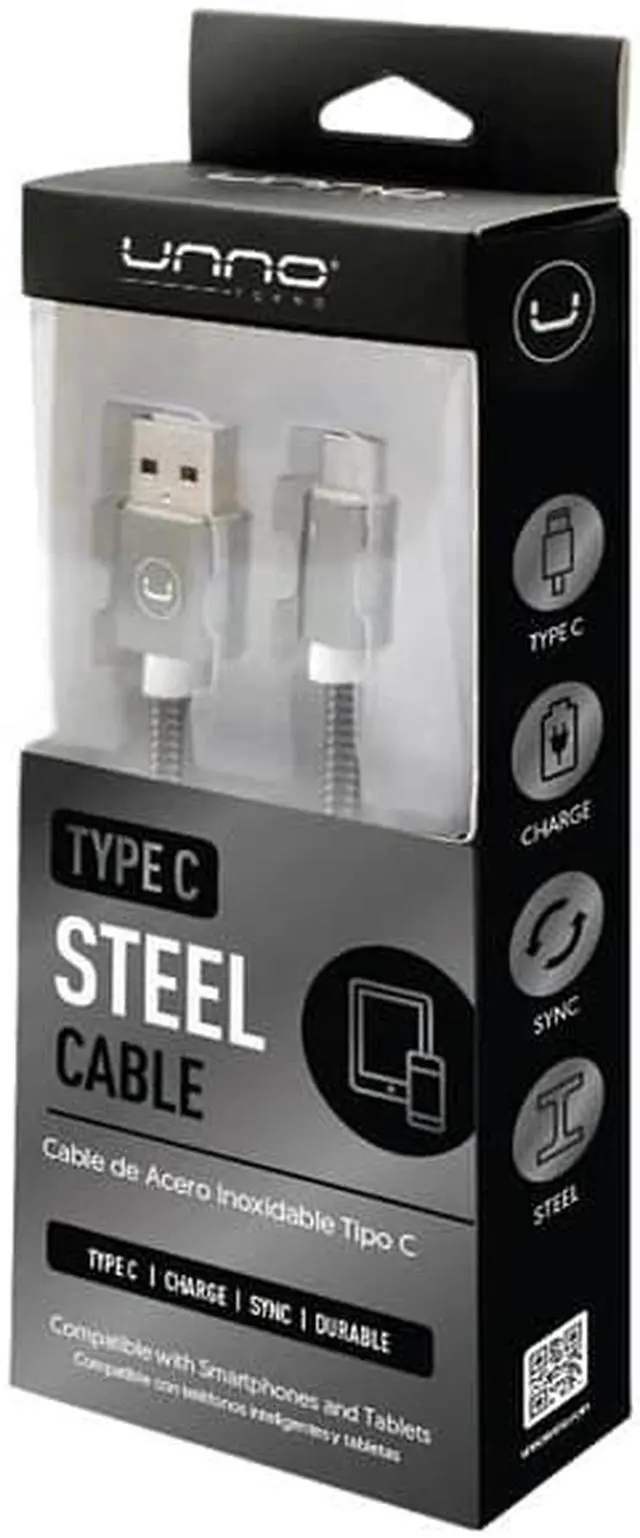 Stylish and ultra-durable stainless steel cable for charging and data sync, Type C.