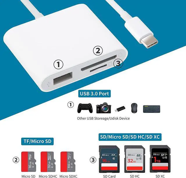 Using this card reader, you can read SD card or Micro SD card taken by digital camera, Dash Cam or Trail Camera and read the photos or videos soon.