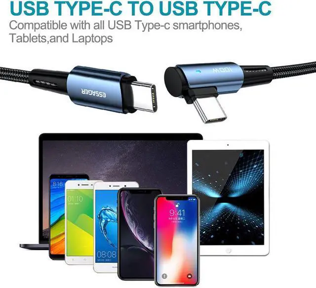 Elbow Design: This right angle type c charging cable fast charge with an innovative 90 degrees "L" design. Its user-friendly design is more convenient and comfortable for playing games, watching videos, reading e-books when you charging.