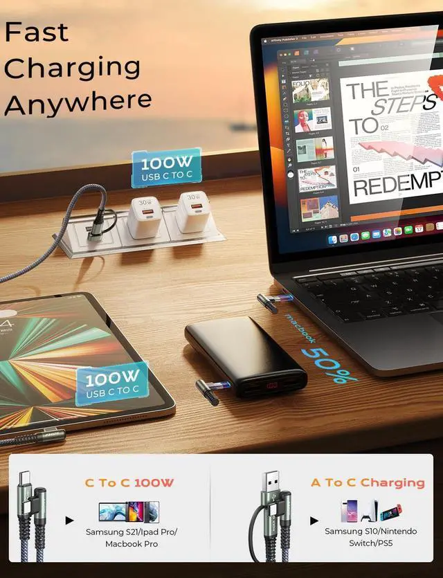 Our 100W 5A A/C ipad charger fast charging cord can perfectly match the latest models of iPad Pro M2 and Macbook Pro with Supercharged, so you can enjoy super fast charging without worrying about the adaptability. And the A/C adapter is also compatible with older versions of the A-port wall plug. (Note that Super Fast Charging requires a Super Fast Charging wall plug)