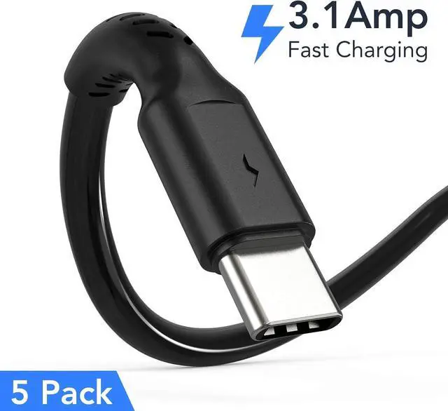 1 Foot Short USB C Cord Fast Charge 5 Pack Durable USB A to USB Type C 3A Fast Charging Cable for Charging Station Compatible with Samsung Galaxy Note 20 A20 A51 S10 S20 Plus Ultra LG Stylo K51,Black