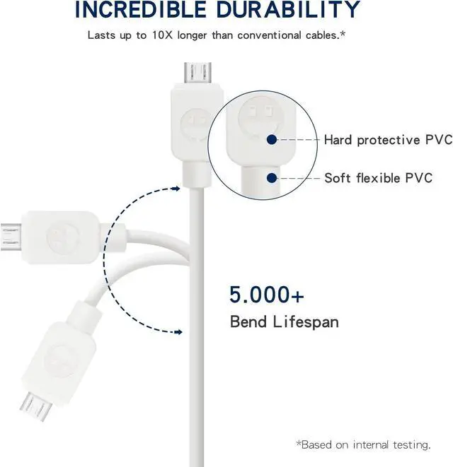Lasts 10x Longer: With aramid fiber construction and a 10000+ bend lifespan, SMALLElectric micro usb cords is many times more durable than anything else on the market.