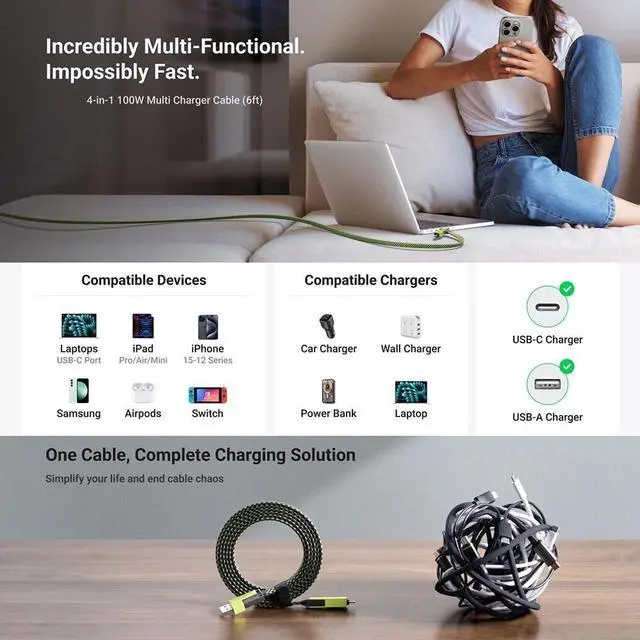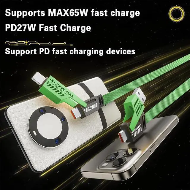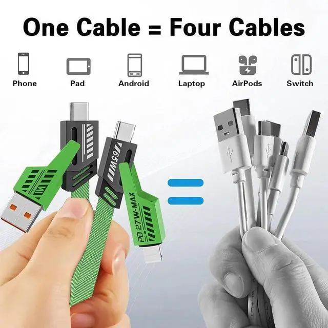 Quality Materials: The 4 in 1 USB C cable is made of flat braided nylon fiber, which is more flexible, durable, and tangle-free than traditional cables. It is also anti-winding, which can effectively prevent the cable from tangling and knotting, and save you a lot of time and effort.