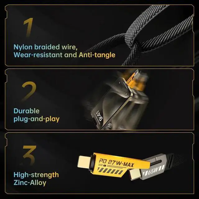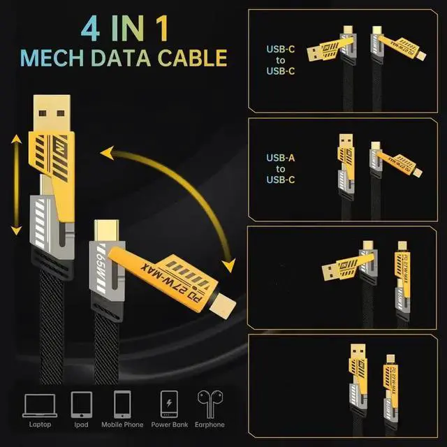 3PACK 4in1 USB Type-C Cable 5ft Data Cord Fast Charging Cable For iPhone Samsung
