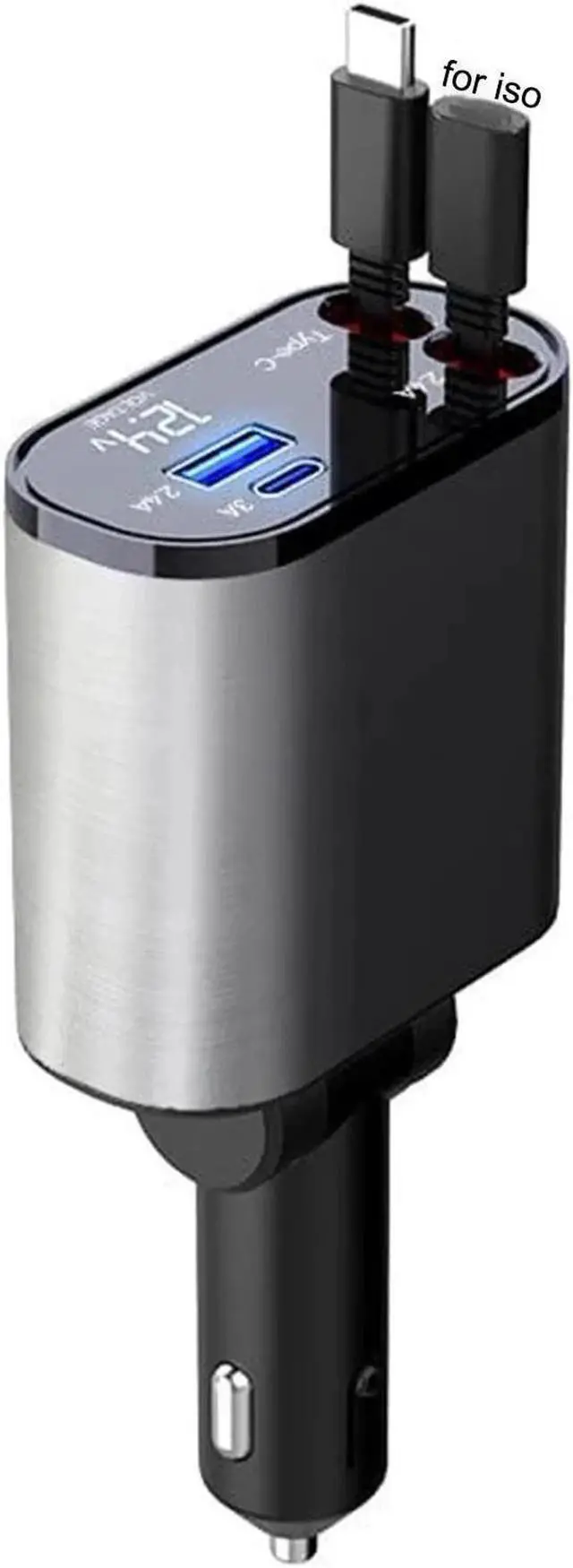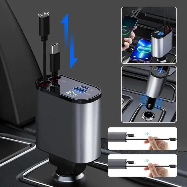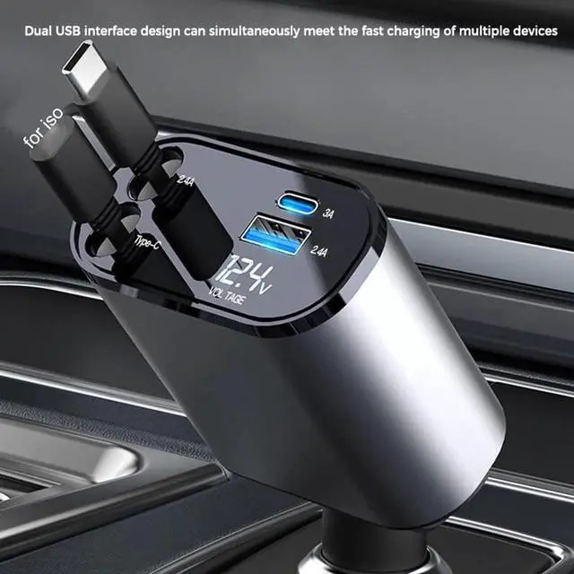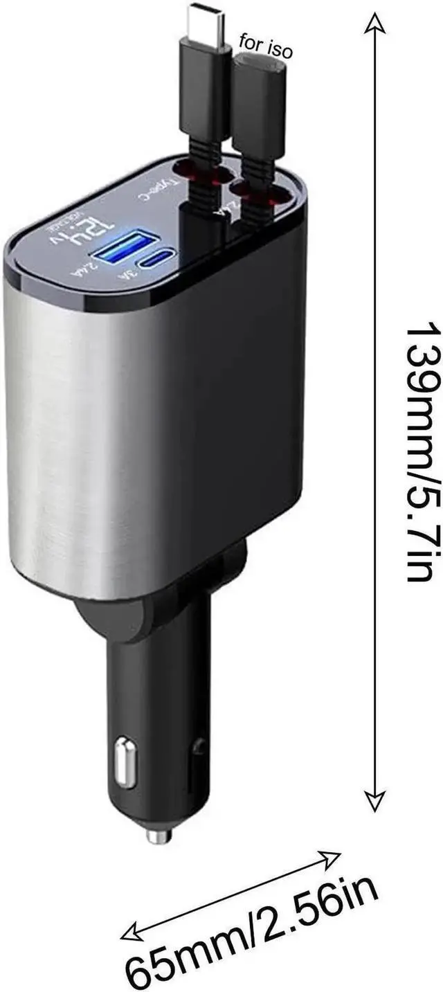 Cable Organization: No more tangled cables cluttering up your car space. Our USB car charger features innovative cable management that keeps your charging cable clean and organized. The automated retraction system allows you to retract the cable inside the charger, providing a neat and tidy look. The flexible design can stretch up to 80cm and be expanded for a longer reach, ensuring hassle-free charging wherever you need it.