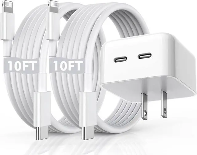 Also has a built-in multi-protection system avoiding over-voltage over-charge over-heat etc. [2pack 10foot/10FT iPhone Fast Charging Lightning Cable]10feet/3m iPhone 13 Charger Cables With the original MFi Chip the Cord equips automatic Chip recognition function. Meanwhile it is ideal for using in different occasions like bedroom office or even travel. No longer trigger warning messages. You can enjoy anywhere for using USB C Fast iPhone Charger Block and Cord. [Compact USB-C PD Wall Chagrer & Foldable Plug]Durable 40W super fast charging iphone charger with 10ft long cable ensure wide compatibility that work for iPhone devices including iPhone 14/14 Plus/14 Pro/14 Pro Max/13/13 Mini/13 Pro/13 Pro Max/12/12Pro/12 Pro Max/12 Mini/11/11 Pro/11 Pro Max/XS Max/XS/XR/X/8/8 Plus/iPad and more.