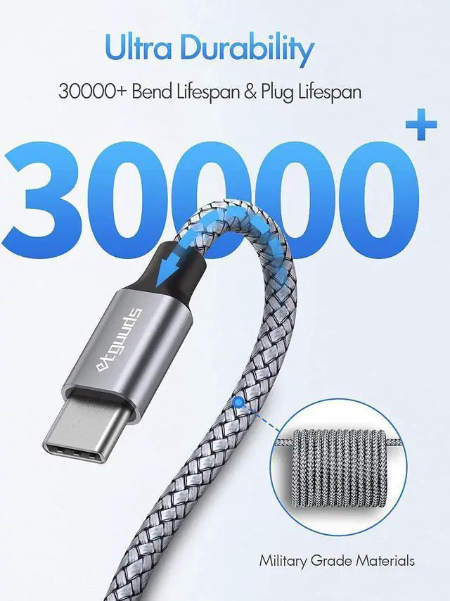 MbpsLong-Lasting: Type c to type c fast charging cable wear-resistant nylon outer layer and ballistic fibers core increase its life time the nylon braided cable bends freely and can withstand 20000+ bendsUniversal