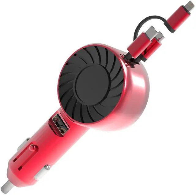 • Fresh Fab Finds 21W 3-in-1 Retractable Car Charger w/ USB & Cables - Red - One size