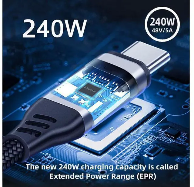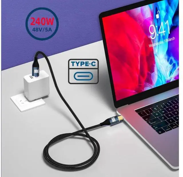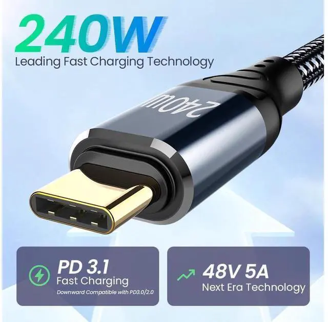 [240W Fastest Charging in History] The 240W usb-c to usb-c cable is the fastest charging cable by far, 240W is the latest technology scheme of USB Power Delivery 3.1 specification.