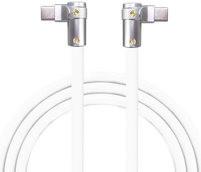 chubbycable FlexElbow Pro - 90 Degree Design 240W Fast Charge Cable Ultra-Thick Silicone Right Angle USB C Cable Phone Tablets Charging Cord, White, Double Elbow Type C to Type C, 16.4FT