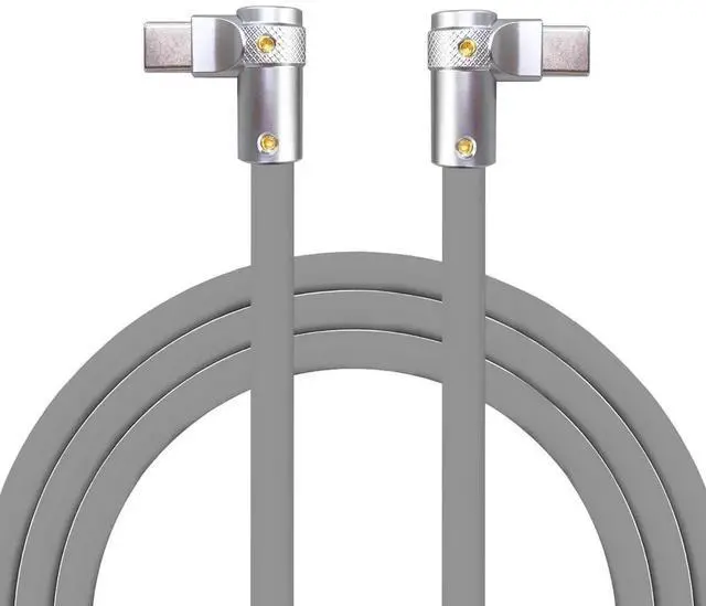 chubbycable FlexElbow 90 Degree 240W Fast Charging Cable Right Angle USB C Cable Silicone Charging Cord Compatible with iPhone 17-15 Series iPad, Gray, Double Elbow Type C to Type C, 19.6FT
