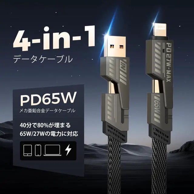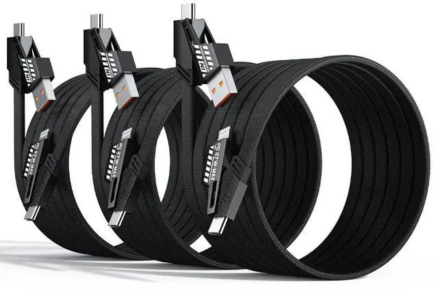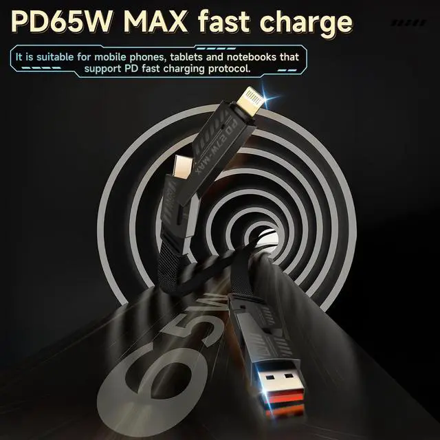 USB Charging Cable: This 4-in-1 USB-C fast charging cable covers all your charging needs with 1 USB-A port 1 Light -ning port and dual USB-C connectors cable. Compatible with almost all devices one for all no more need for other cables.