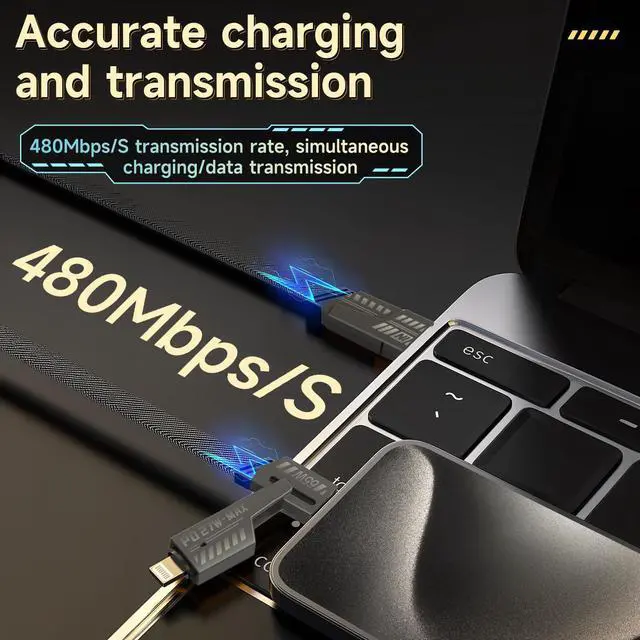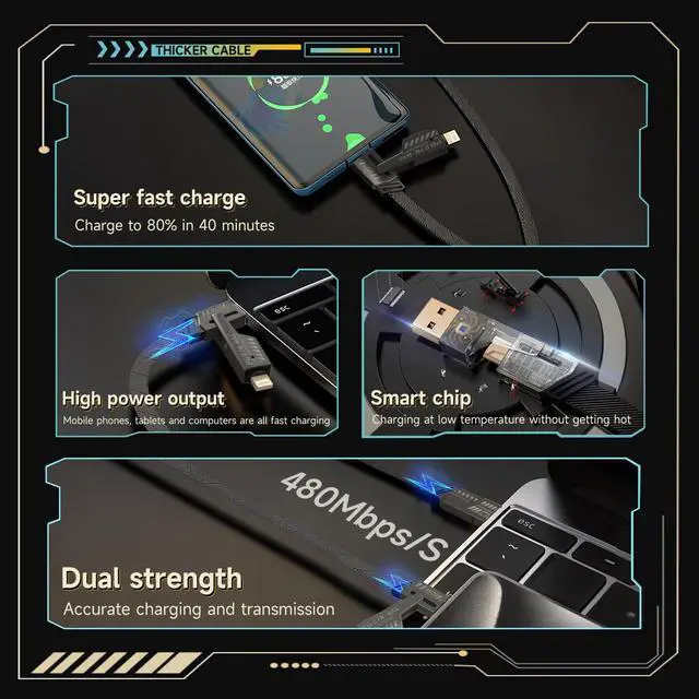 Above All: This fast 4 in 1 USB C charging cable adopted with *Thickened Tinned Copper Wire and E-Mark Chip* which enjoys greater electric conductivity to ensure Safer Faster & more Stable Charging and extend the multi iphone charger cords life. With over 20 000+ bends and plug/unplug tests this 4 in 1 usb multi charging cables comes with long-lasting durability even with frequent use.?