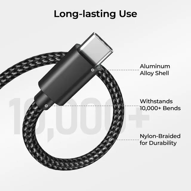 It boasts a 7000+ bend-tested lifespan which enables to endure daily wear and tear. The aluminum alloy connectors also have reinforced necks to reduce damage from bending.? USER-FRIENDLY DESIGN? --- It comes with an additional flexible Velcro strap to help you keep any excess cable out of the way and to avoid this cable getting knotted. The perfect length of the cable ( 6.6 FT) makes it suitable to be used in couch bed office or even backseat of your car while your device is charging.? REVERSIBLE CONNECTOR? --- Thanks to the reversible connector you can finally wave goodbye to the frustration of plug in failures because your cable is in the wrong orientation.