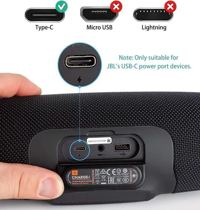 (Note: only compatible with the USB-C Type-C charging jack. )Ultra-Fast Charging TechnologyOur USB charger is designed with advanced fast-charging technology delivering power efficiently to your devices. It significantly reduces charging time ensuring your Speaker and other gadgets are ready to go in no timeComprehensive