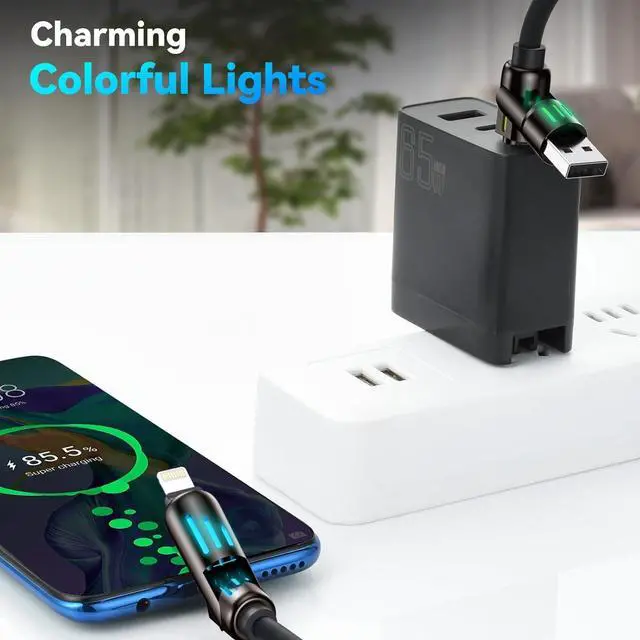 Eyecatching Charging LightsThe attractive colourful lighting creates a vibrant atmosphere making charging more enjoyable and stylish. You can easily find the wire in the dark avoiding the danger of the phone falling and the risk of being tripped by the wire when grabbing. Durable and ReliableMade of robust material this multi iPhone charger cord has a longer service life than other cables. Soft silicone wire prevents tangles and resists common wear and tear. The thickened core provides stable current output for your device ensuring a fast charging experience. Universal CompatibilityWith its 4-in-1 design this 4 in 1 USB C charging cable combines USB A USB C and lightning connectors making it compatible with a wide range of devices including smartphones tablets and laptops.