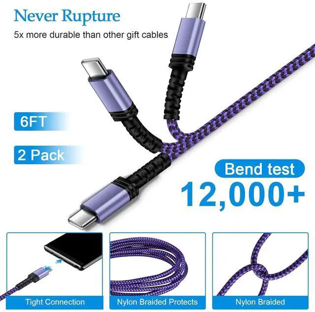 High Quality Assurance: Premium nylon braided type c cable adds additional durability and tangle free. Made of a high-quality aluminum casing that makes the usb-c charging cable resistant to oxidation Nylon braided cable can bear 10000+ bending test Premium Aluminum housing makes the type c charger fast charging cable more durable.