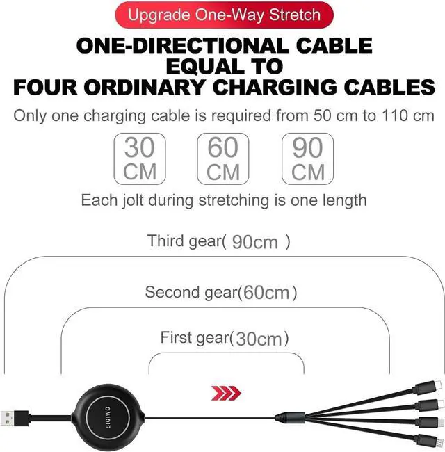 [What You Will Get]: In this era of high-quality life where everyone needs to get a lot of information from electronic devices we provide this 2.9 ft multifunctional retractable usb charging cable you will use every day for charging. It is your best choice. During use if you find any problems please contact us. It has a 30-day full money back guarantee and one yeare warranty service. We provide 24 x 7 friendly customer service.
