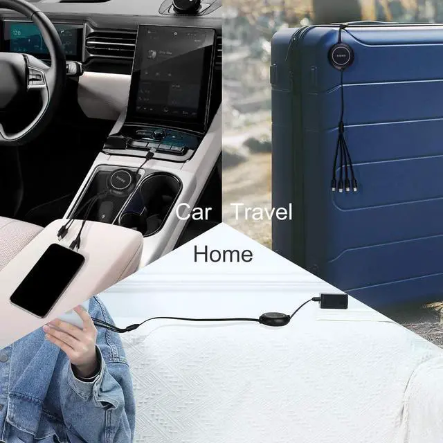 Retractable Design]: The fully sealed overall structure adopts the lantern shape design and unidirectional retractable structure. Ensure that the rotating shaft inside is not easy to get dirty not easy to get stuck the cable is clean. Upgrade one-way telescopic design concept. Just use one hand to pull out the extended 4 cable end to choose the required length and then only need to pull out again to retract to the original position. The other usb port end is not stretchable.