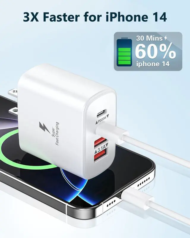 Charger Block: BECHAGE fast charger plug with 4-Ports (Two ports USB C +Two ports USB A) can fast charge 4 devices simultaneously at up to 40W. Choosing multiport 40W charger plug minimize waiting time and frees you from messy chargers with various interfaces.?? 2-Pach 6FT USB C to Lightning Cable- BECHAGE iphone charging cable adopts the latest MFI C94 lightning end which can fast charge for your iphone 14 13. It also supports data transfer speeds of up to 480Mbps. The USB C to Lightning cable is braided with nylon material for extra protection and durability?? Wide Compatibility- BECHAGE Charger Block with Dual USB-C port and Dual USB-A port Compatible with iPhone 14/14 Plus/14 Pro/14 Pro Max/13/13 Mini/13 Pro/13 Pro Max/12/12 Mini/12 Pro/12 Pro Max/11/ 11 Pro/11 Pro Max/XS Max/XS/XR /X/8/8 Plus/SE/ iPad Pro/ Air /Mini?? Multiple Safety Protection- BECHAGE USB C Charger Block has approved CE FCC & ETL certifications. Equips with Short Circuit Protection Over Temperature Protection Overcurrent Protection Overvoltage Protection Over Power Protection for worry-free charging.?? What You Will Get - 2-Pack 40W 4 Port fast charging block with 2 Pack 6ft USB C to Lightning Cable (White) with worry-free 18-month warranty and friendly customer service.
